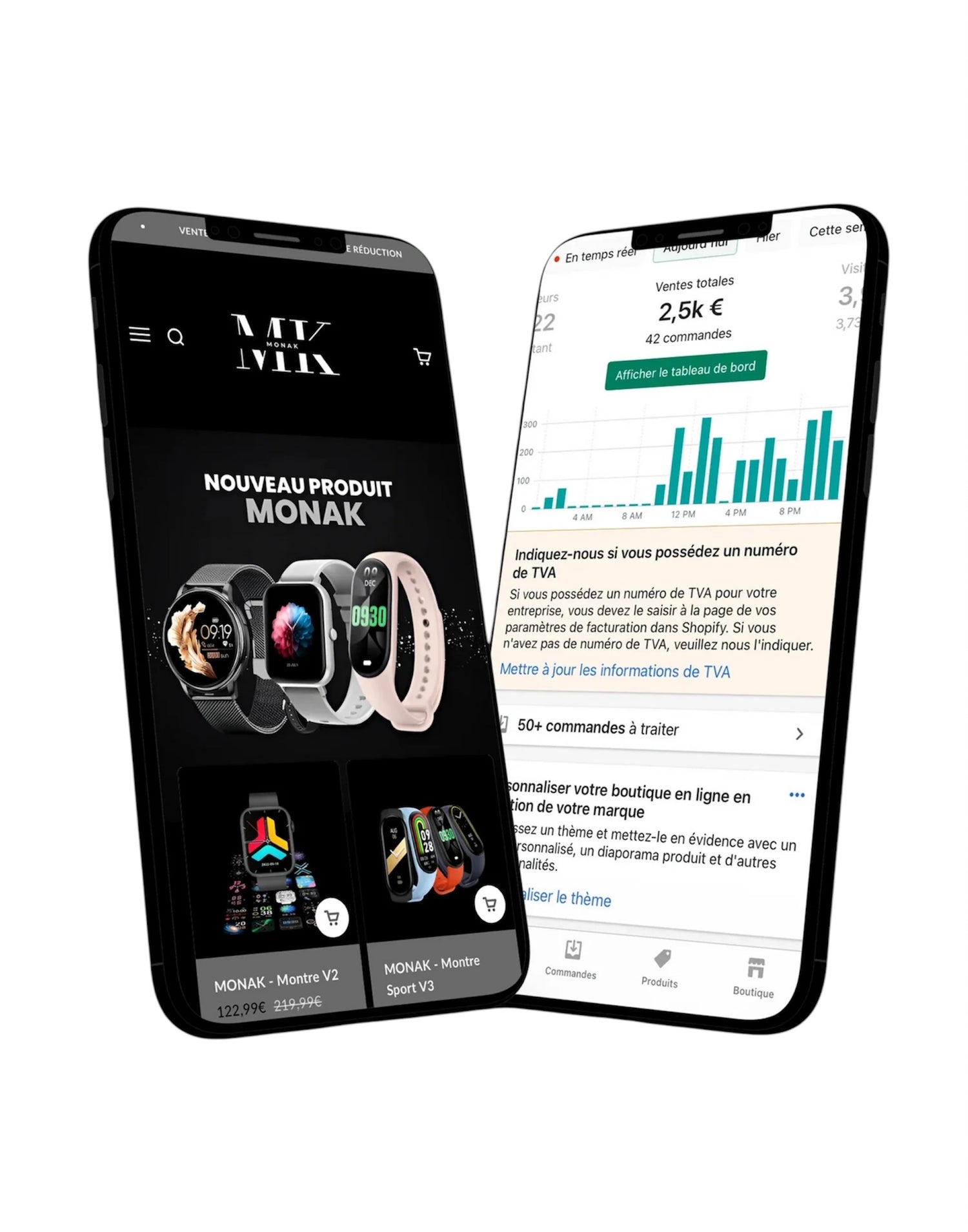 Vous allez recevoir les accès et la propriété de votre compte Shopify et de votre site sous 72h par e-mail.
